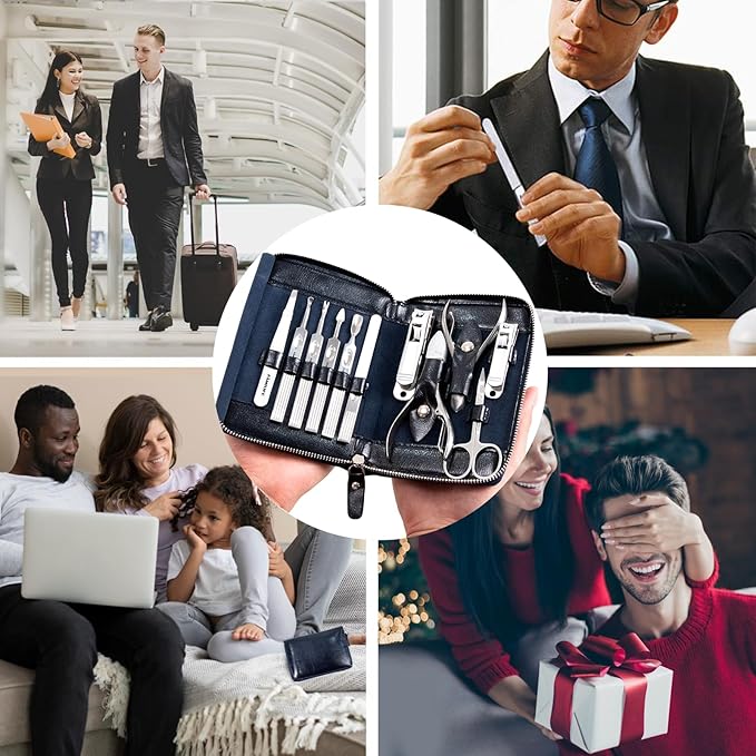 - 【Multi-Functional Manicure Set】 Our manicure kit contains 11 pieces of nail and toenail tools to meet all your hand care, facial, and foot care needs. The nail clipper set suitable for all shape of nails. Manicure set can be a gift for him or her. The best gifts for festivals, such as Christmas, Thanksgiving Day, Fathers' Day and so on.