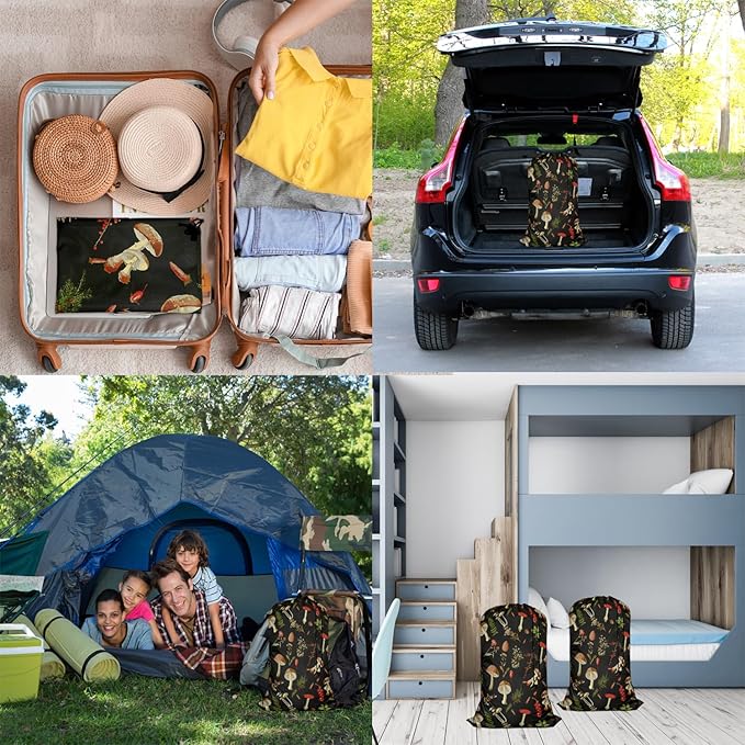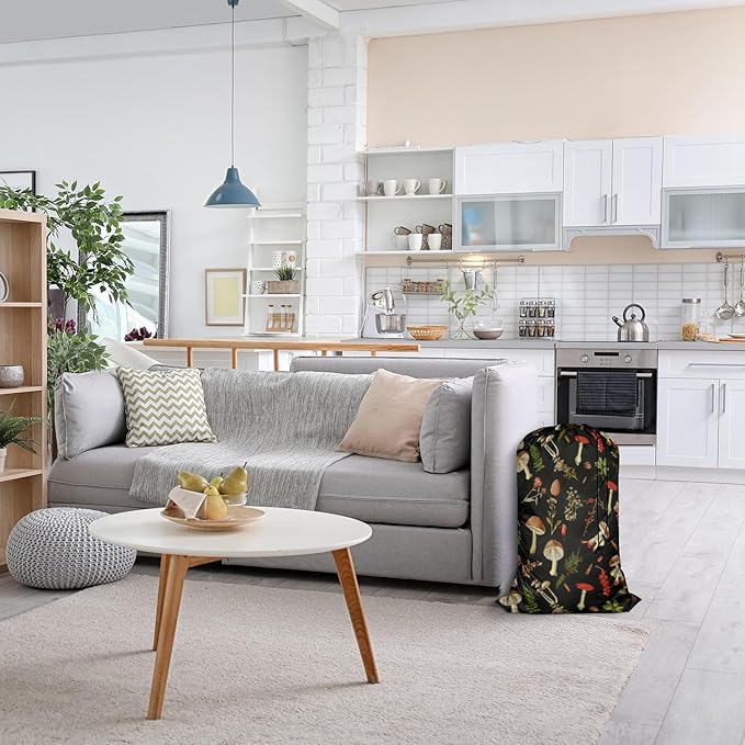 Swono Mushrooms Laundry Bag Drawstring Closure Fall Jungle Theme Floral Cherry Exotic Botanical Plant Heavy Duty Laundry Portable for College Dorm Room Essentials for Travel Camp