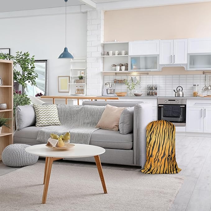Swono Tiger Fur Laundry Bag with Drawstring Straps, Heavy Duty Extra Large Laundry Bags for Laundromat and Household, Stripe Animals Jungle Texture Washable Travel Dirty Clothes Bag Hamper Liner,