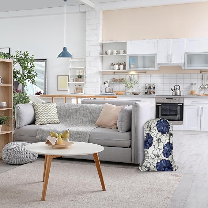 Swono Wild Flower Extra Large Huge Heavy Duty Polyester Laundry Storage Bag with Drawstring, Dark Navy Blue Floral Sketch Washable Travel Dirty Clothes Bag Hamper Liner