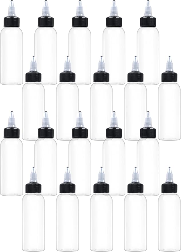20 Pcs 2oz Plastic Squeeze Bottles with Twist Top Cap, 60ml Clear Dispensing Bottles, Empty Squirt Bottle for Liquids, Sauces, Arts, Crafts, Travel