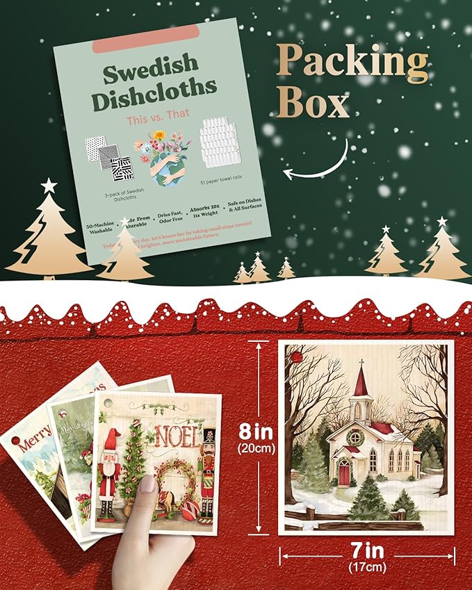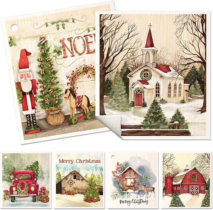 - 6 PACK DISHCLOTHS: Our 7 x 8 inches seasonal themes swedish dishcloths design with snowflakes, Christmas trees, and festive ornaments. These unique patterns are perfect for matching all home decor styles, adding a touch of seasonal charm to your kitchen or dining area