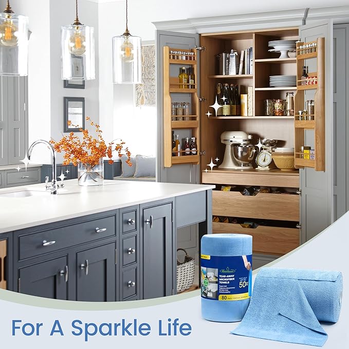 - [Convenient & Durable] Easy to tear off one sheet on a convenient roll of 80-count microfiber cloths, to be accessible on demand for tear and go cleaning. It can be washed and reused many times without losing its effectiveness