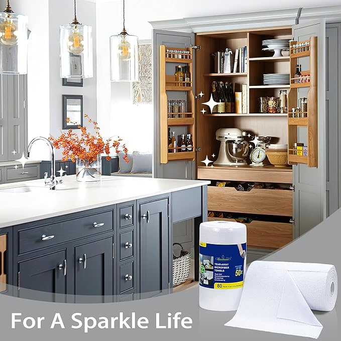 - [Eco-Friendly] One roll of cleaning cloth contains 80 sheets, which can be used both wet and dry. As paper towel alternative, one reusable paper towel roll can replace tens of thousands of regular paper towels. It will save you a lot of money