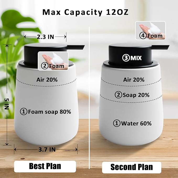 Soap Foaming Dispenser Ceramic with Easy-to-Press Pump Hand Foam Dispenser for Shampoo Bathroom Kitchen 12 oz