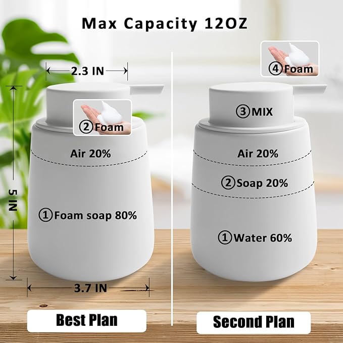 Soap Foaming Dispenser Ceramic with Easy-to-Press Pump Hand Foam Dispenser for Shampoo Bathroom Kitchen 12 oz