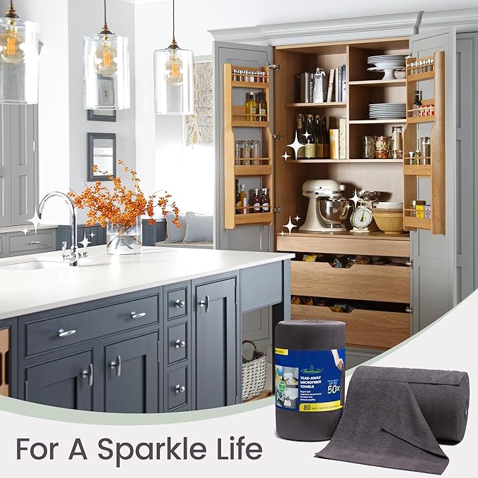 - [Convenient & Durable] Easy to tear off one sheet on a convenient roll of 80-count microfiber cloths, to be accessible on demand for tear and go cleaning. It can be washed and reused many times without losing its effectiveness