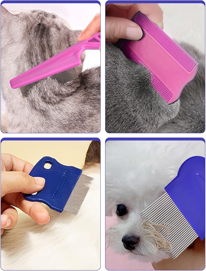 Flea Comb for Cats Dogs, 8 Pack Flea and Lice Grooming Comb Set for Cats, Pet Grooming Tools for Small, Medium & Large Pets (Pink & Blue)