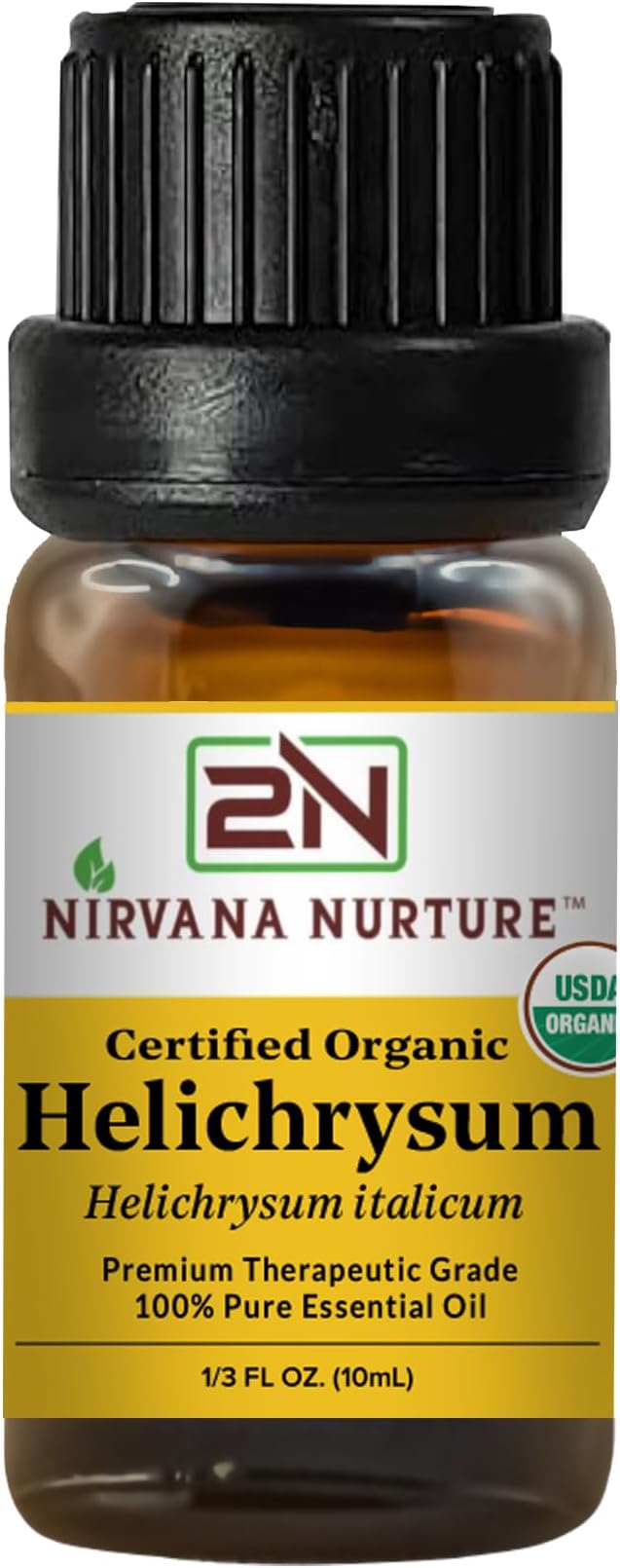 - SKIN REJUVENATION & RENEWAL: Nirvana Nurture Helichrysum Essential Oil is renowned for its ability to exceptionally support rejuvenation of dull skin and nourishes skin. It helps reduce the appearance of scars, fine lines, blemishes, glow skin and enhances tone. When diluting a few drops in a carrier oil before applying it.