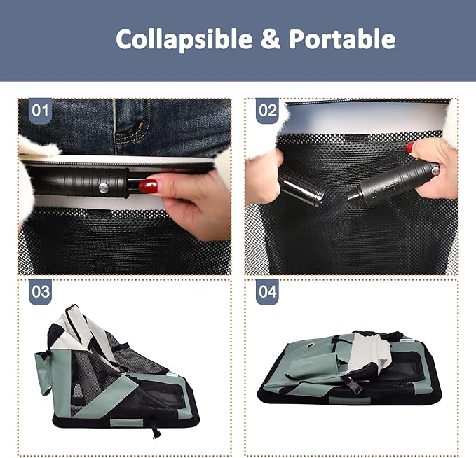 JESPET Soft Dog Crates Kennel for Pets, 3 Door Soft Sided Folding Travel Pet Carrier with Straps and Fleece Mat for Dogs, Cats, Rabbit, Indoor&Outdoor Use(5-Shale Green, Small(24"L x 16.5"W x 16.5"H))