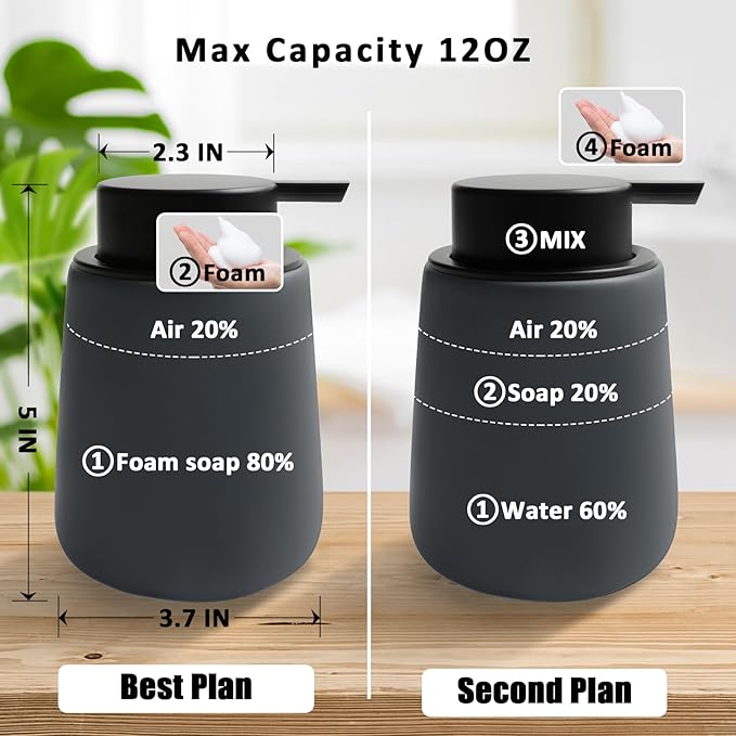 Soap Foaming Dispenser Ceramic with Easy-to-Press Pump Hand Foam Dispenser for Shampoo Bathroom Kitchen 12 oz