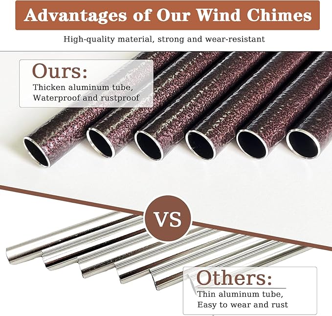 - Premium and Upgraded Material: This pet memorial wind chime has a total height of about 28 inches (from the hook to the bottom of the pendant). It's made of a high-quality thickened bronze aluminum tube, which is high-quality and wear-resistant. The 6 aluminum tubes, ranging from 8.3 inches to 12 inches, are anodized and thickened to prevent corrosion. Each piece is of the highest quality.