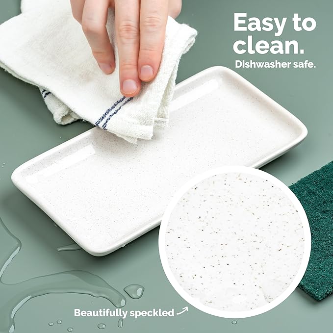 - CERAMIC TRAY: Elevate your kitchen decor with an elegant, white-speckled soap dispenser tray. This heavy, sturdy, and easy-to-clean ceramic kitchen soap tray is the perfect countertop accessory.