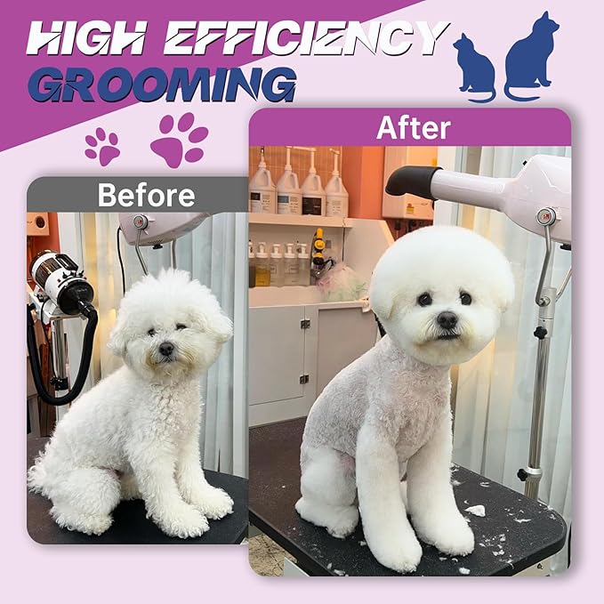 - Adjustment Screw & Muffler: The adjustable screw allows you to fine-tune the tension of the blades, providing precise control based on your furry friends' grooming needs. Additionally, the muffler reduces noise levels and alleviate any stress and anxiety that your pet may feel during grooming.