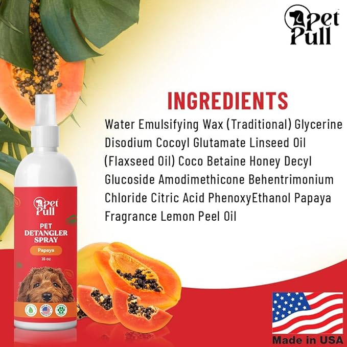 Detangler Spray - Dog Grooming Puppy Detangler Spray to Comb Through Knots, Mats, and Tangles - Detangling Spay for Dogs Pet Papaya Scent - Made in The USA (16 Oz)
