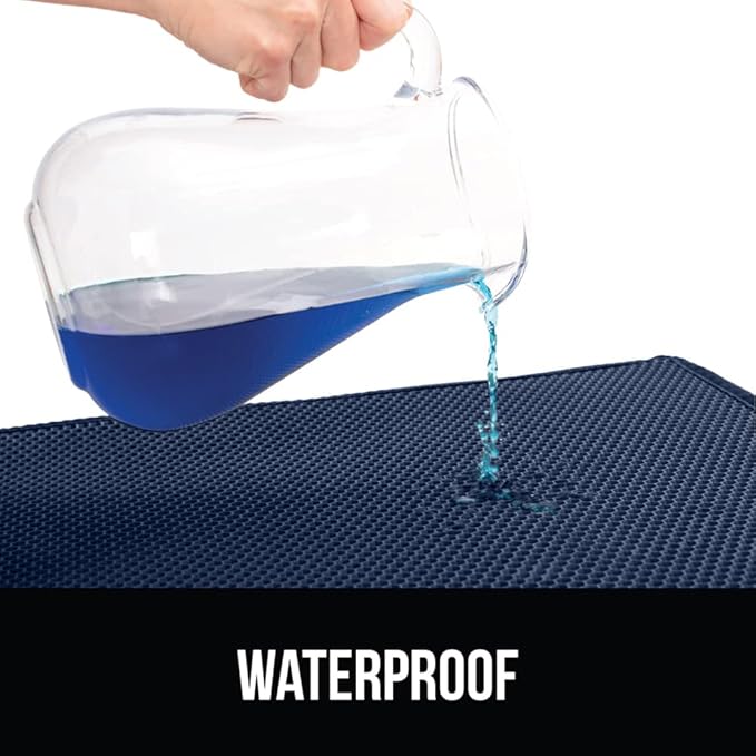 GORILLA GRIP Honeycomb Cat Litter Box Mat, Two Layer Trapping Waste Mats, Soft On Paws, Litter Box Supplies and Essentials for Indoor Cats, Traps Excess, Water Resistant for Floors, 30x24 Navy Blue