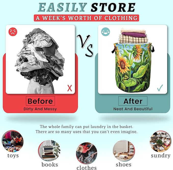 - Multipurpose:The laundry basket will be a good assistant in your life. Ideal for playrooms, bathrooms, bedrooms, cloakrooms, kitchens, offices and car cabs to store toys, clothes, office debris and household clutterng