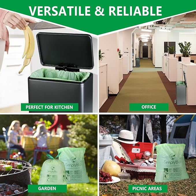 - Fast Compostability: These bags can decompose into humus, carbon dioxide, and water within 180 days in a standard composting environment. These bags are an ideal choice for managing kitchen food waste in compact trash cans, carefully designed to reflect our commitment to sustainable living and eco-friendly choices