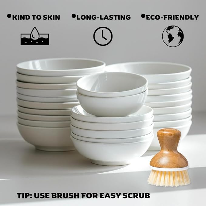 - Hypoallergenic & Skin-Safe: Formulated with organic ingredients, this non-toxic dish soap is gentle on your hands but tough on grease, ensuring your dishes are sparkling clean without harming your skin.