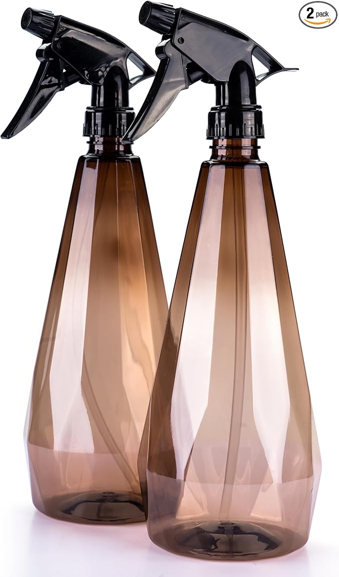 - 2 Pack of Empty Amber Plastic Spray Bottles, perfect for misting plants, cleaning solutions, and hair care products