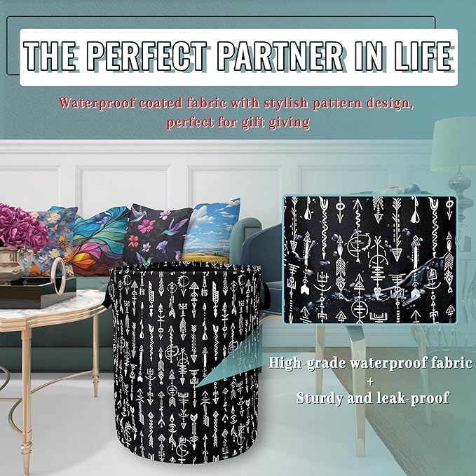 Black White Adventure Arrow Laundry Basket Foldable With Handles Tote Bag Oxford Cloth Funny Laundry Hamper Clothes Storage Bucket Toy Organizer 18.9" x 16.5" For Bathroom/Laundry/Bedroom