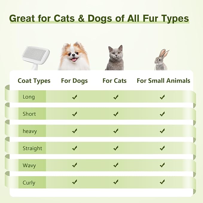- SUITABLE FOR ALL COAT TYPES : The dog brush for shedding is suitable for use on dogs, cats, and small animals with all coat types, including long, short, curly, wiry, and even heavy coats.