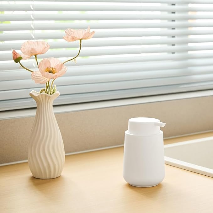 Matte Cream White Liquid Hand Soap Dispenser Plastic 11 oz - Modern Minimalist Style for Bathroom & Kitchen Countertop Refillable