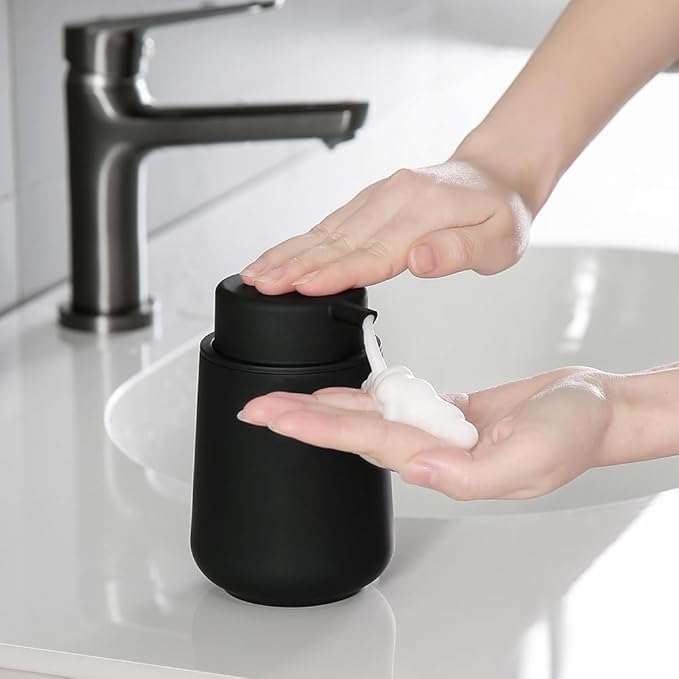 Matte Black Foaming Hand Soap Dispenser Plastic 11 oz - Modern Minimalist Style for Bathroom & Kitchen Countertop Refillable