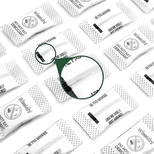 - WiseMini Desiccant Sachet utilizes premium quality silica gel allowing a high absorption capacity for moisture and odor. Premium Silica Gel is selected to be an absorbent due to its excellent absorbing capacity and its stable and non-toxic chemical characteristics. Packed by breathable material, our standard package size is from 0.25g to 14g per pack.