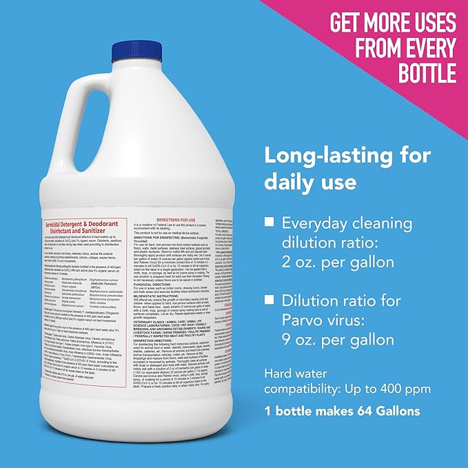 - Cost-effective and easy to use – Save time and money with a powerful cleaner, disinfectant that leaves behind a wintergreen scent! Simply dilute, apply, and leave the surface wet for 10 minutes to disinfect. No rinsing required, making it the perfect solution for daily kennel cleaning.