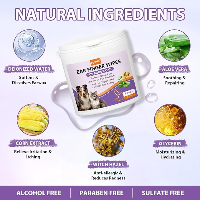- Hydrating Touch, Fully Moisturizing: The ample moisture in the pet ear finger wipes softens and dissolves stubborn earwax, helping to clean pet ears thoroughly without damaging ears. The soft and comfortable dog ear cleaning finger wipes gives no pressure on on your pup's sensitive ears. The hydrating touch can effectively soothe dry skin in and around the ears.