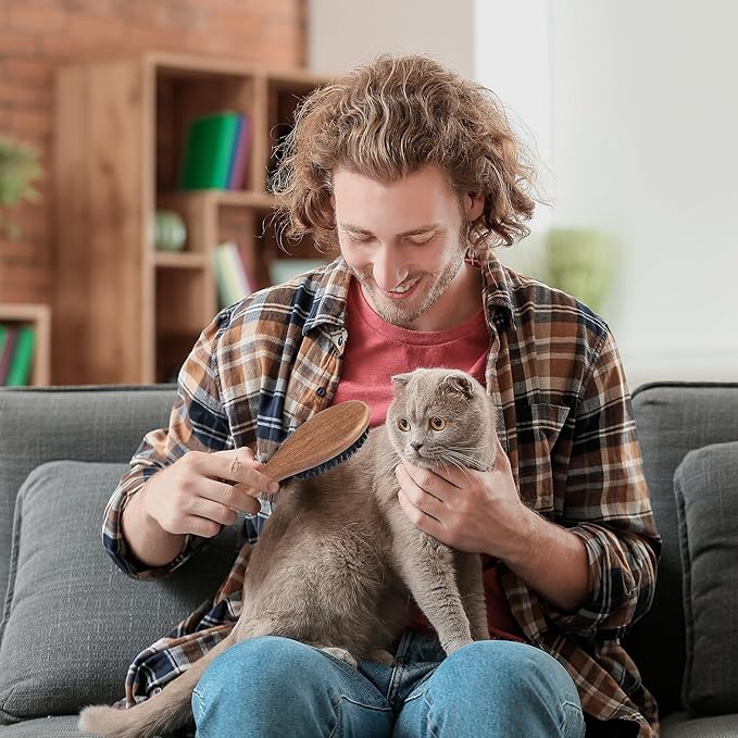 - Your Furry Friend's New Best Friend: The wooden cat fur brush is excellent for removing dirt and debris from the outer coat. By brushing in the direction of your cat's fur growth, you can easily clean your pet's head, chest, belly, neck, and legs. For long-haired cats that shed year-round, brushing can help prevent matting and tangles.