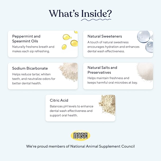- GENTLE and PET-FRIENDLY FORMULA: Worried about harsh chemicals? Our dental fresh water additive for dogs and cats is made from gentle, pet-safe ingredients, making it ideal for daily use. Support your pet's oral hygiene and freshen their breath with confidence