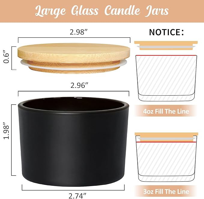 - GLASS JARS FOR CANDLES WIDELY APPLICABLE: Our 4oz candle vessels come with beautifully designed stickers and a candle wicks kit, suitable for 3/3.5/4/4.5oz candles. With your candle inside, they can perfectly decorate your home. Additionally, they can hold store spices, teabags, or coffee beans.