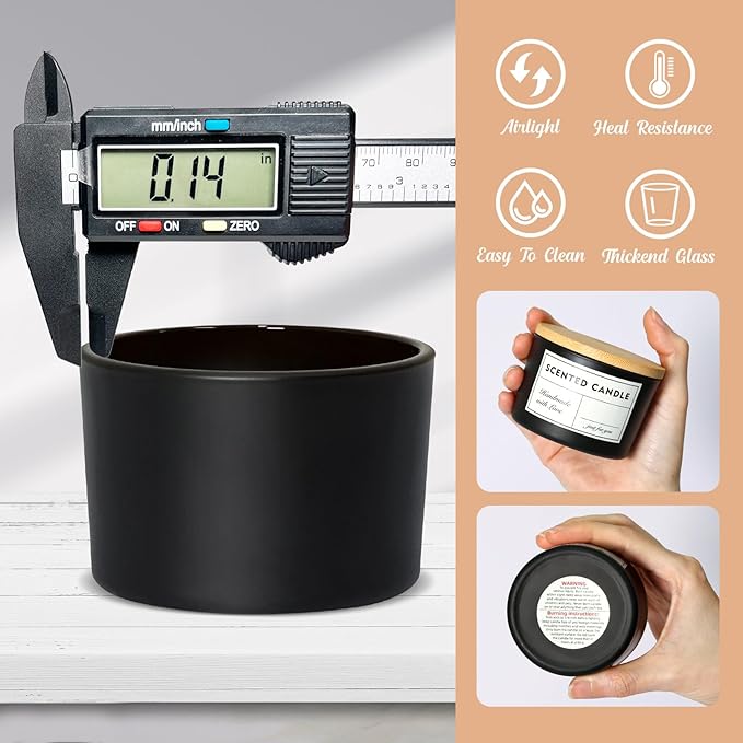 - HIGH QUALITY & EASY CLEAN: Our candle containers have a thickened glass bottom and glass walls of 0.14”, making them heat-resistant, strong, not easily breakable, and reusable. Additionally, glass candle jars are dishwasher safe and easy to clean by hand.