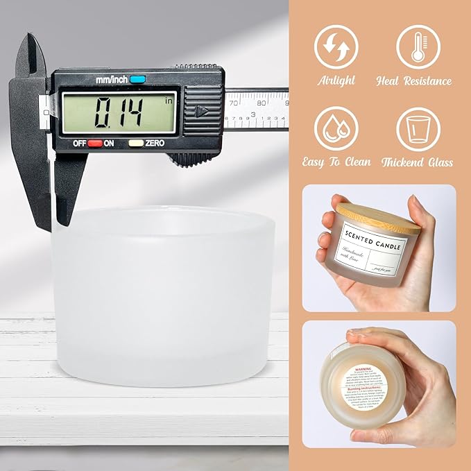 - HIGH QUALITY & EASY CLEAN: Our candle containers have a thickened glass bottom and glass walls of 0.14”, making them heat-resistant, strong, not easily breakable, and reusable. Additionally, glass candle jars are dishwasher safe and easy to clean by hand.