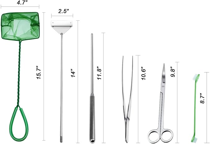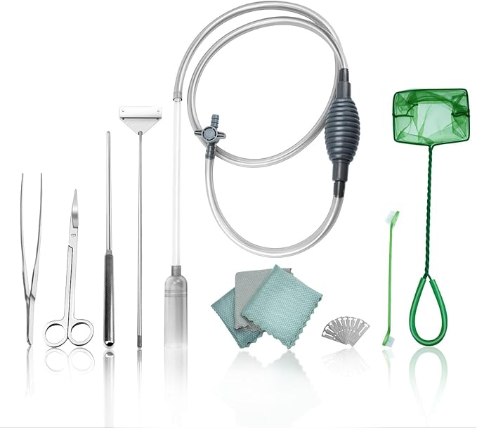 - Complete Aquarium Cleaning Kit: Our aquarium siphon kit includes essential items like an aquarium vacuum gravel cleaner,aquarium algae scraper,scissors,tweezers and so on, catering to all your aquarium maintenance needs. Perfect fish tank cleaner kit