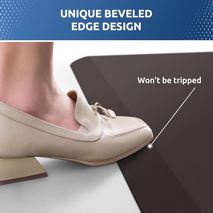 - Safety Design: the diamond-shaped design on the bottom of anti fatigue mats keeps the mat in place and prevents slippage; the bevel edge reduces the risk of tripping on the mat