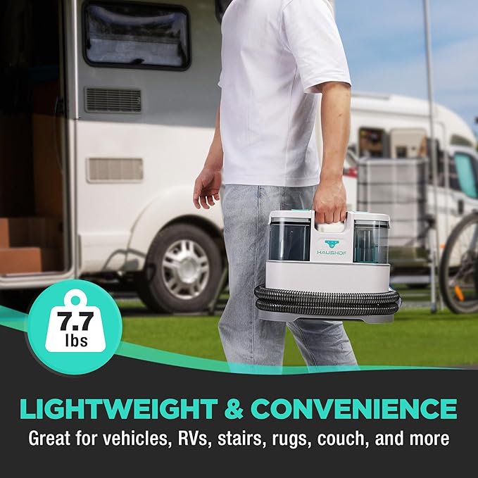 - Lightweight and Compact Design: Weighing only 7.7 lbs, this cordless couch cleaner is easily portable. The ergonomic top handle makes car upholstery cleaner machine easy to carry around the living room, bedroom, stairs, cars, and RVs. Portable upholstery cleaner machine's compact size enhances portability