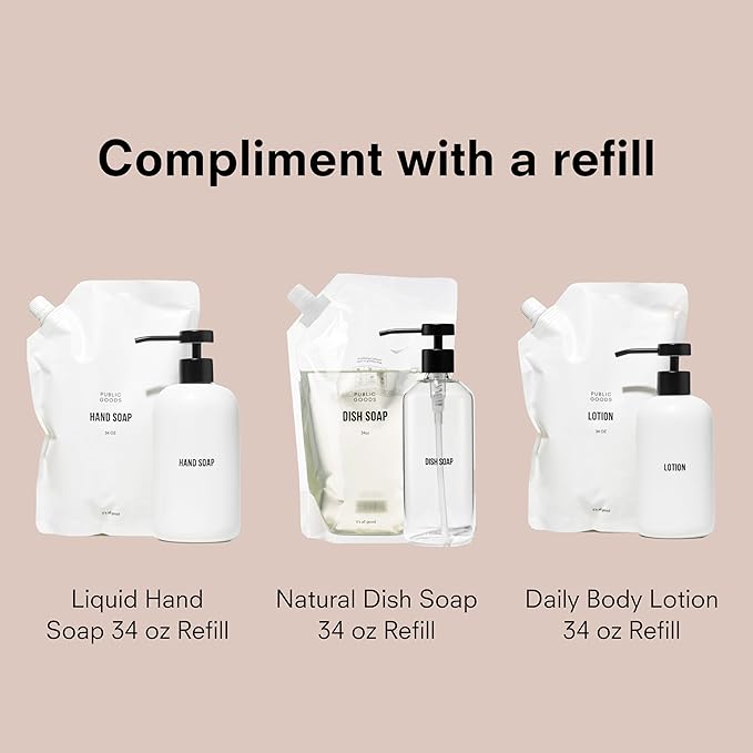 - Less Waste - Reduce single-use plastic in your home when you complement your glass dish soap dispenser with our 34 ounce dish soap refill and plant-based Walnut Scrubber Sponge.