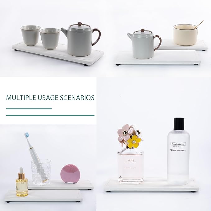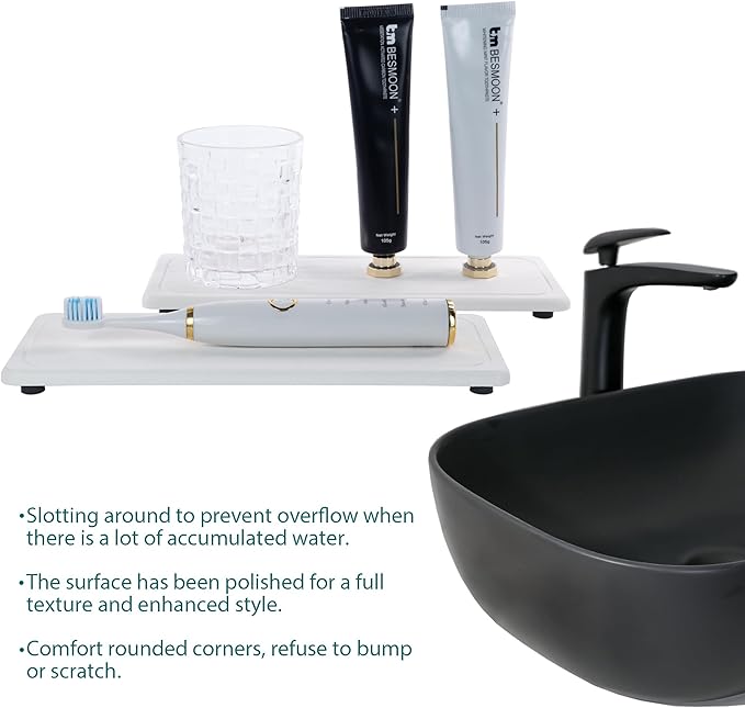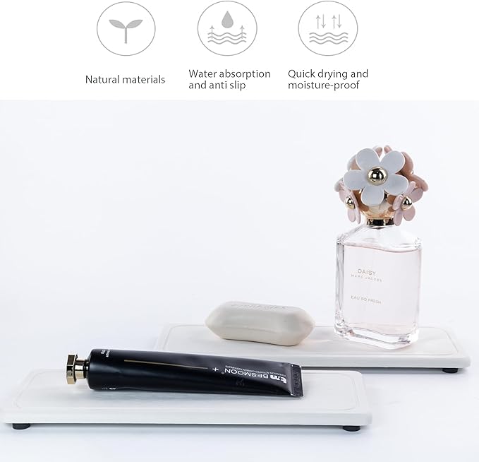 - Perfect Design Created for the Modern Home, to make life clean, comfortable and orderly. Made from natural Diatom mud and plant fiber, small holes within diatomite enable it have amazing water absorption. They could absorb water and gets dry in a few minutes. It makes the Bathroom Counter top more dry and tidy.