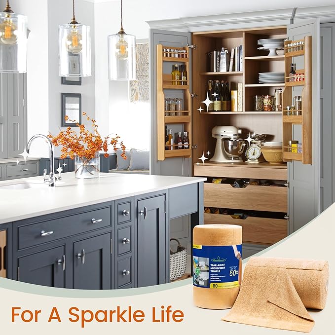 - [Convenient & Durable] Easy to tear off one sheet on a convenient roll of 80-count microfiber cloths, to be accessible on demand for tear and go cleaning. It can be washed and reused many times without losing its effectiveness