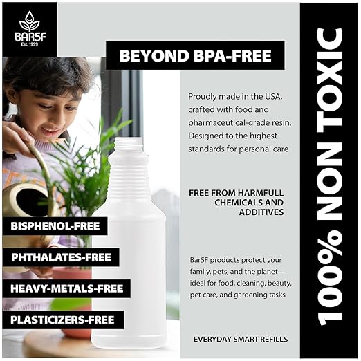 - NON-TOXIC: Made in the USA, these durable, reusable HDPE spray bottles are extra heavy-duty, chemical-resistant, non-toxic, bisphenol-free, phthalate-free, heavy-metals free, and safe for food, pets, plants, and personal care.