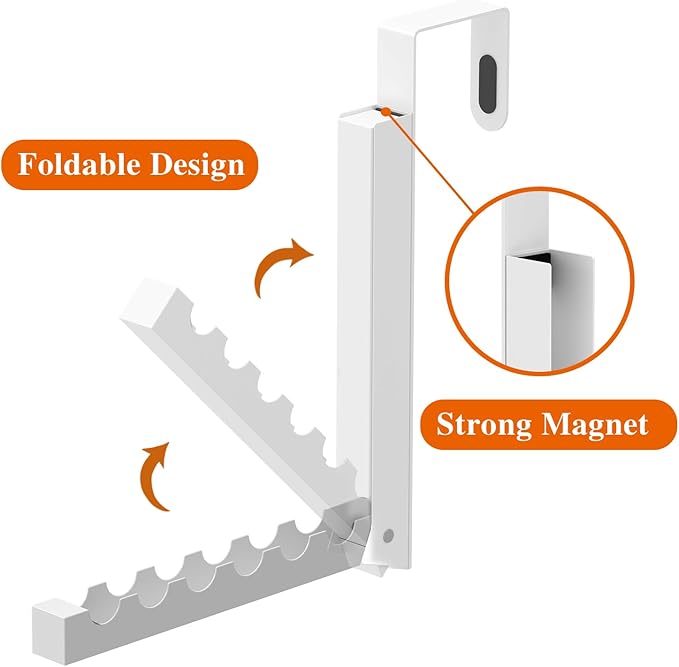 - 【Folding & Space-Saving】: This over the door drying rack are designed with folding capabilities with 6 Groves Over Door Towel Racks for Clothes.The door hangers equipped with a magnet that can be folded when you don't use it,which can be used to hang and organize your clothes, hats, bags or something else in your bedrooms, bathrooms, living rooms or closets.