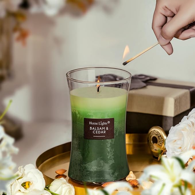 HomeLights 3-Layer Candles for Home Scented, 21.52 OZ Natural Soy Wax Scented Candles Burns Up to 100 Hours, Large Jar,Balsam & Cedar