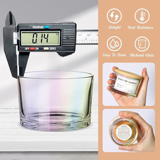 - HIGH QUALITY & EASY CLEAN: Our candle containers have a thickened glass bottom and glass walls of 0.14”, making them heat-resistant, strong, not easily breakable, and reusable. Additionally, glass candle jars are dishwasher safe and easy to clean by hand.