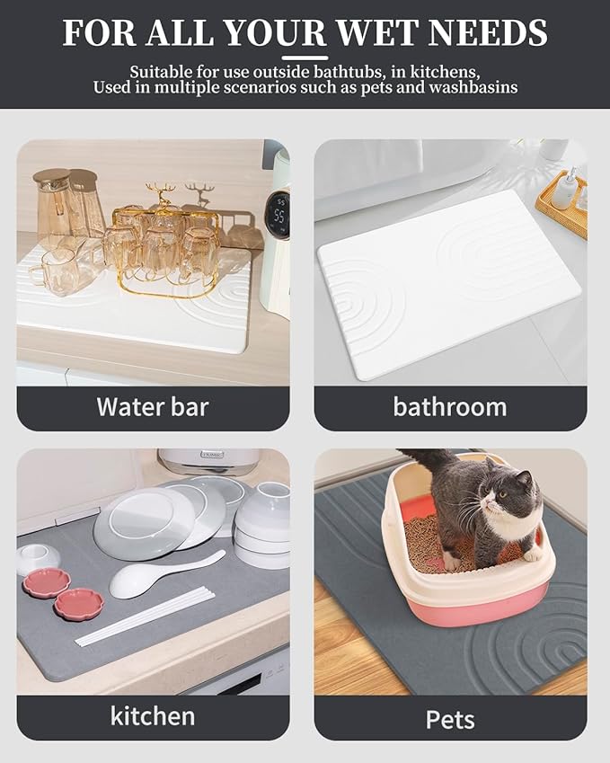 - Super Absorbent & Quick Drying: Experience unparalleled comfort with YOULTTAN's Diatomaceous Earth Bath Mat. Its high absorbency quickly wicks away moisture, ensuring your floor stays dry and safe.