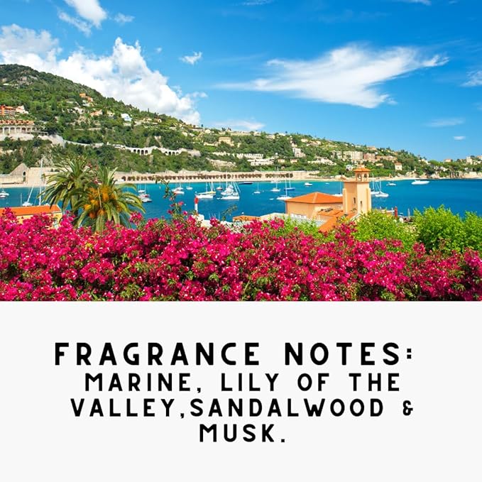 - Luxurious Fragrance: Immerse yourself in a symphony of scents that transport you to the azure shores of the Côte d’Azur. The marine notes evoke the freshness of the sea, while sandalwood adds a touch of warmth and sophistication. Lily of the valley offers a delicate floral aroma, complemented by the deep, musky undertones that linger on your garments.