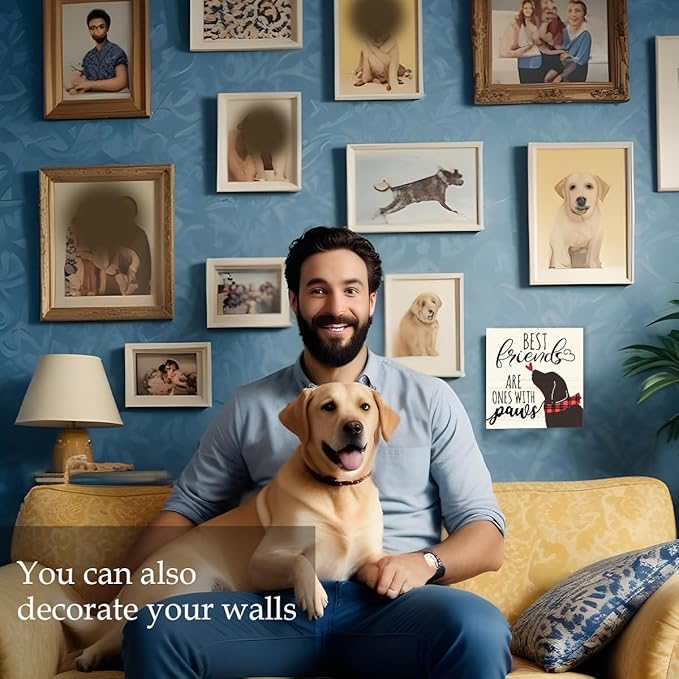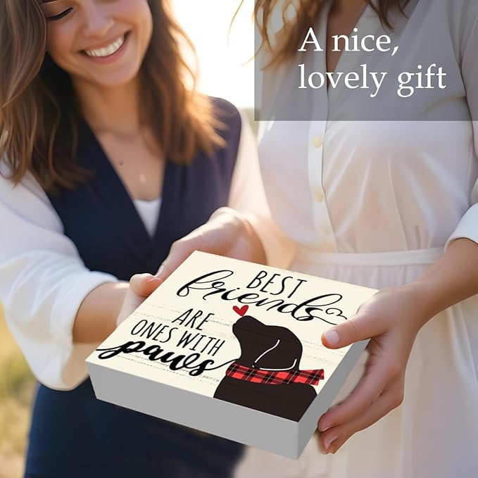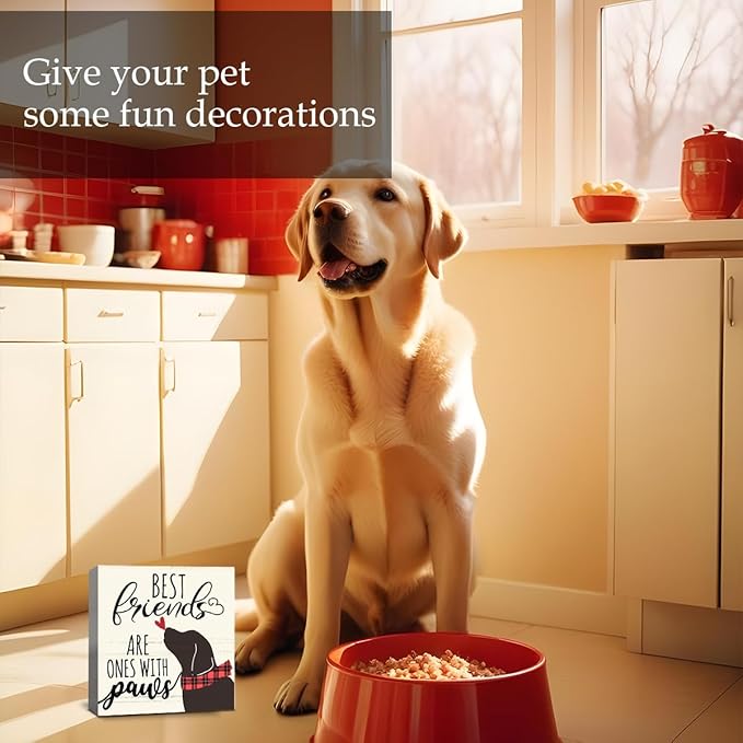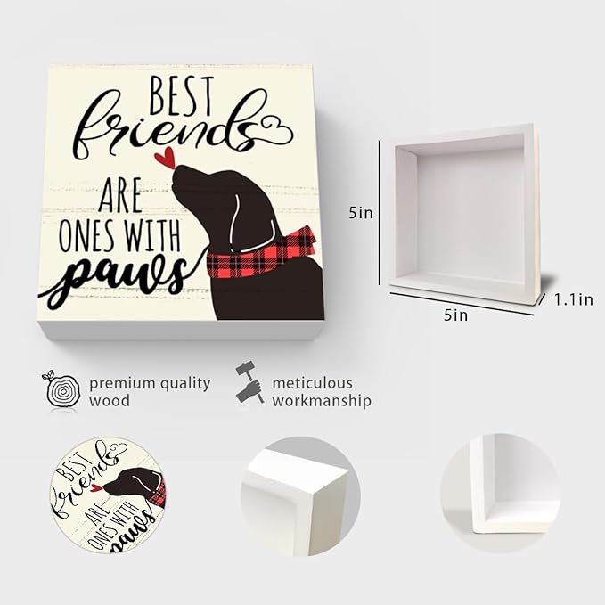 Best Friends Are Ones With Paws Dog Wood Box Sign Decor, Dog Lovers Gifts, Cute Dog Decorations for The Home Kitchen Bathroom Living Room Bedroom Shelf Tabletop Farmhouse Decor, 5 x 5 Inch