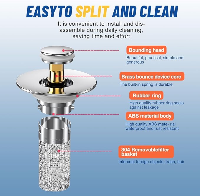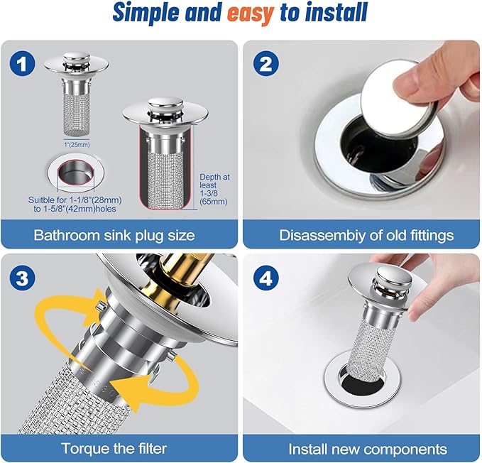 2Pcs Bathroom Sink Stopper Hair Catcher, Pop Up Sink Drain Filter with Removable Stainless Steel Filter Basket Hair Catcher, for US Bathroom Sink Stopper Replacement (2PCS)